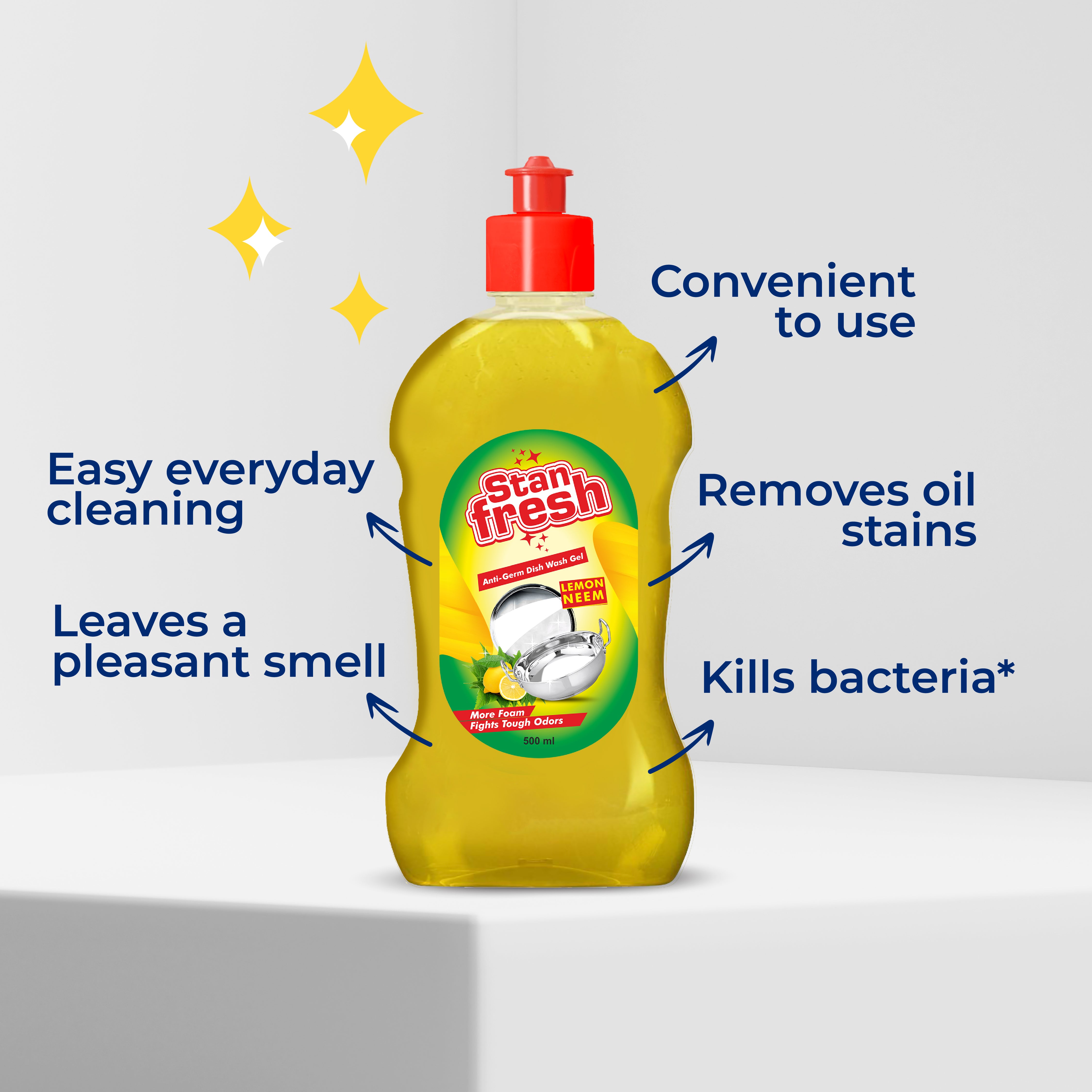 How To Use: - Tackle Utensils with Stanfresh Anti-Germ Dishwash Gel – Mix 1 teaspoon in a bowl of water to create lather, dip the scrubber, and clean utensils; use directly for tough grease.