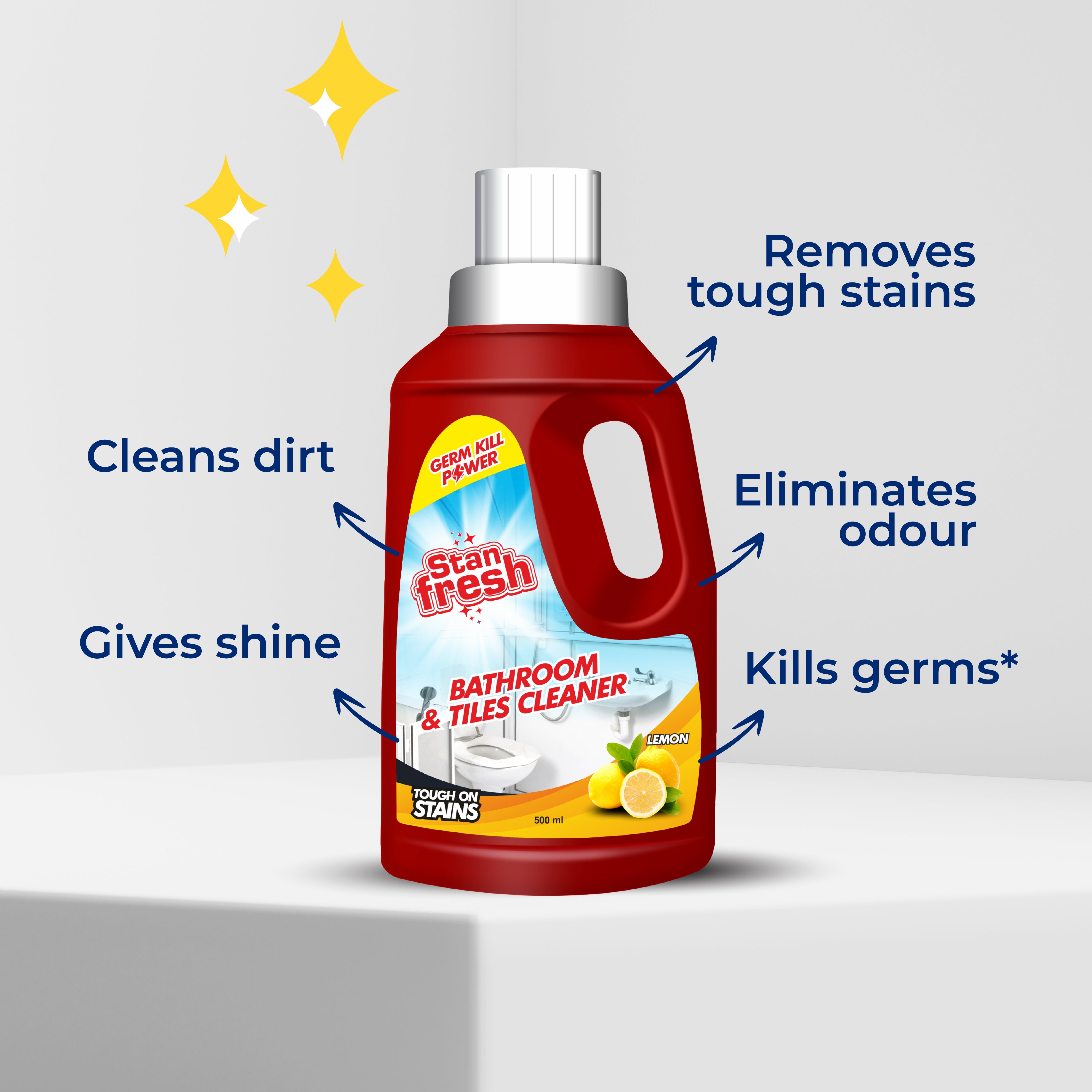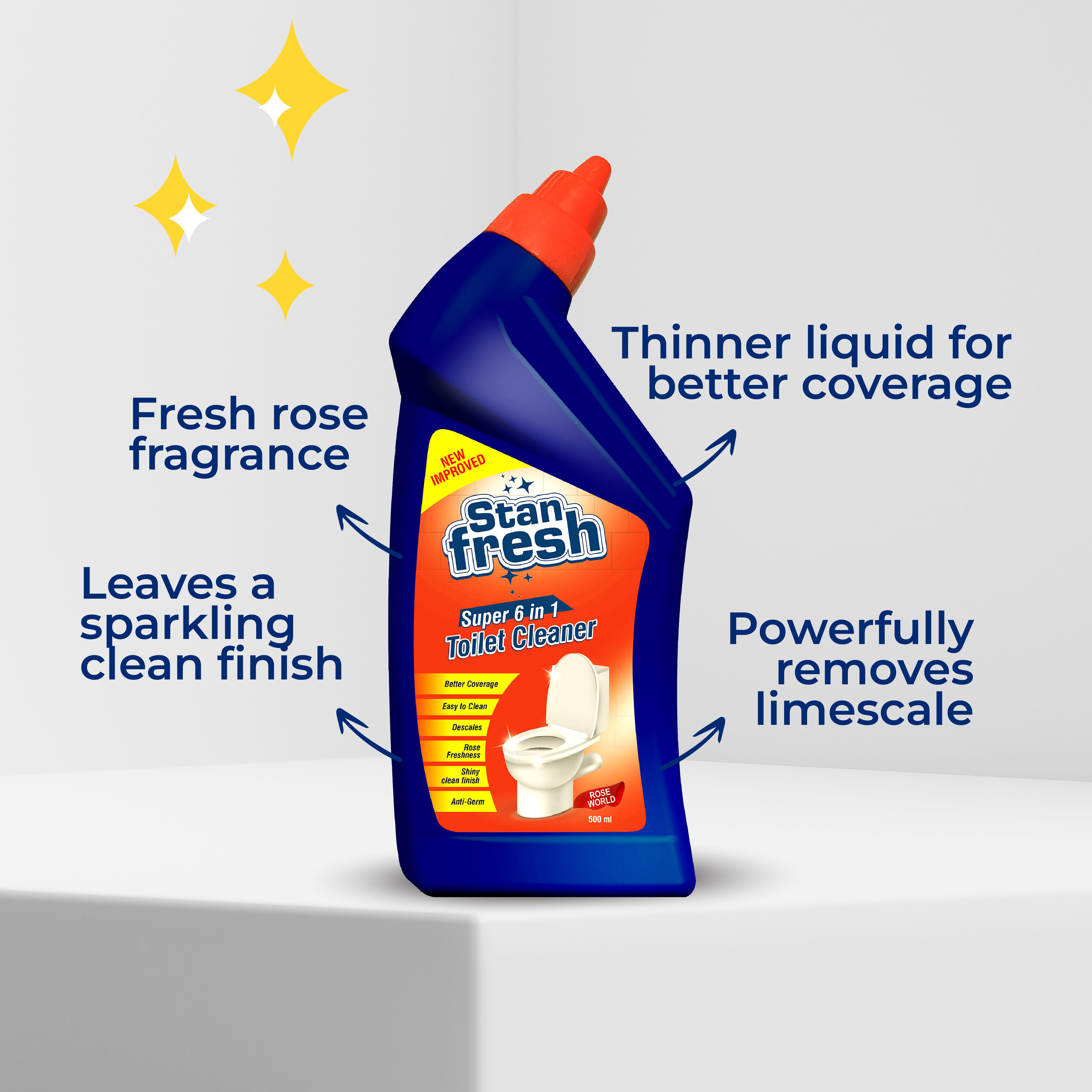 - Freshen Up with Stanfresh Toilet Cleaner – Pour around the toilet bowl and under the rim, leave for 10-15 minutes, scrub with a toilet brush, and flush for a spotless, germ-free finish.
