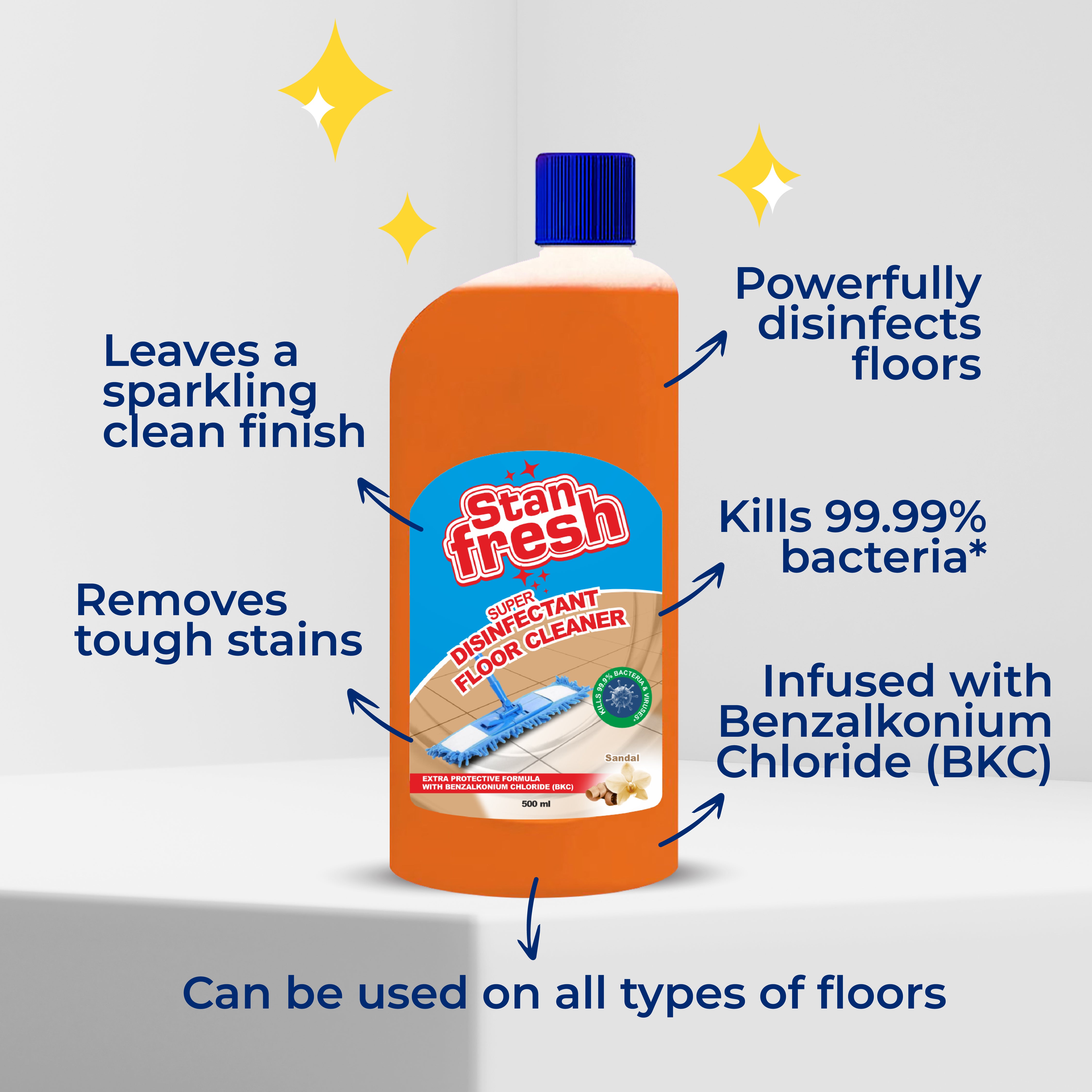 - Move to Stanfresh Super Disinfectant Floor Cleaner– Add 1 capful to a bucket of water, mop the floor, and let it air dry.