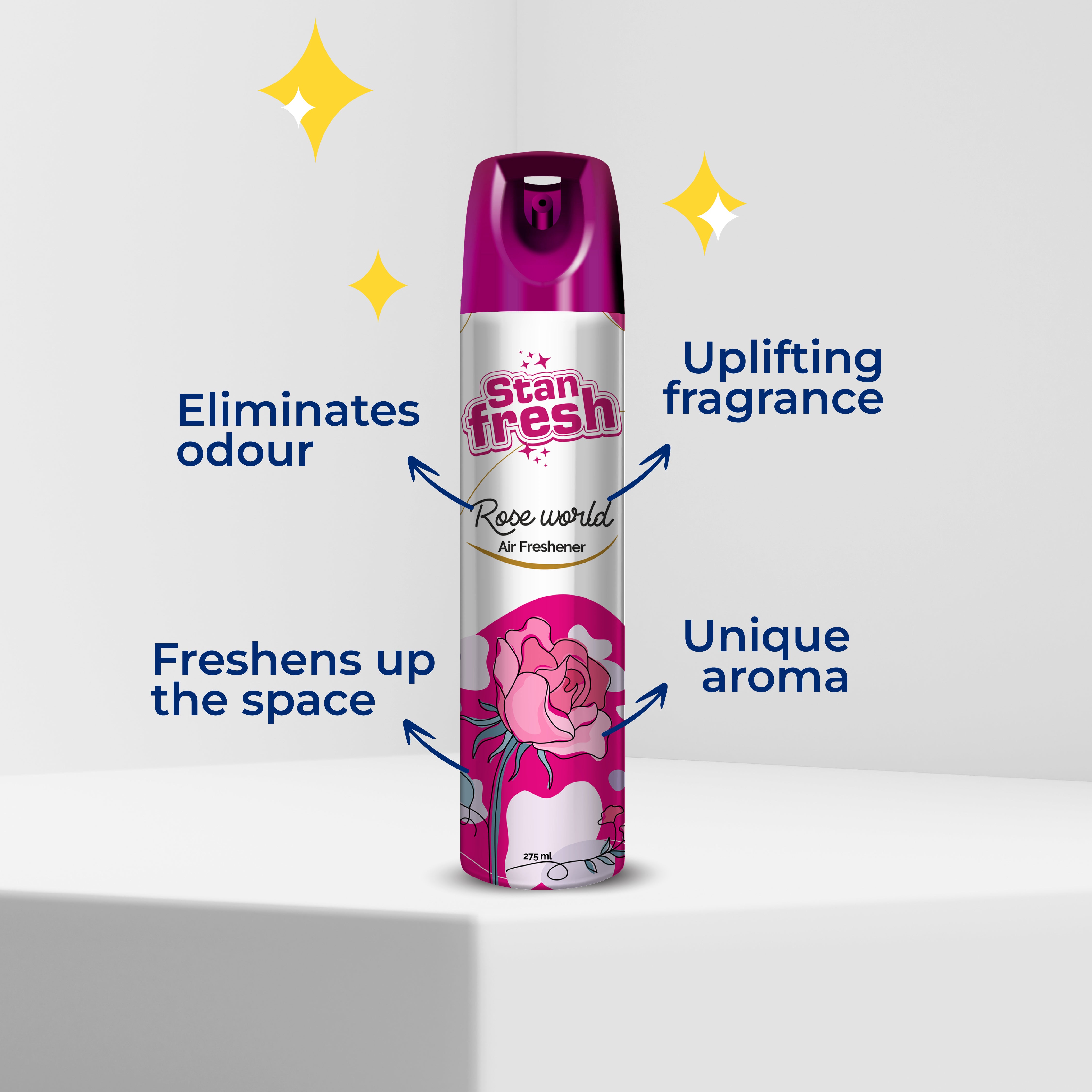 - Tackle Tough Stains with Stanfresh Stain Remover – Spray directly on stains, let it sit for 30 sec to 1 min., and wipe with a damp cloth.
